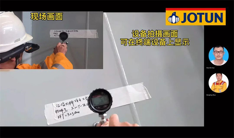 在這個“防疫常態(tài)化”的時代,出差已經(jīng)不再像以前說走就能走了,施工現(xiàn)場的緊急情況無法及時處理,輕則影響工期,重則影響工程質(zhì)量,后續(xù)隱患無窮。佐敦為此引進(jìn)新科技——頭戴式AI計算機(jī),現(xiàn)場人員走到哪里,后端人員就能看到哪里,涂層檢查、遠(yuǎn)程指導(dǎo)、現(xiàn)場勘驗、附著力測試、線上培訓(xùn)等都能即時實現(xiàn),有效提高了服務(wù)的時效性,更是降低了客戶與佐敦的工作成本。